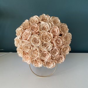 $250.00Champagne color Long Lasting roses in a signature white box . This arrangement will say for up to five years. Also available in smaller or larger sizes.TEXT (646)626-9751 for more information.