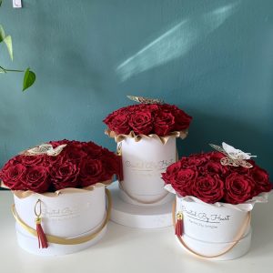 $350.00M size box with preserved (3-5 years lasting) roses. Also Available in different colors, to customize it text (646)626-9751.