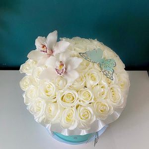 $200.00White Long Lasting (preserved) roses in A red Surprise box. This arrangement will say for up to five years. Also available in the black box and you can customize the color of the roses. For more info TEXT (646)626-9751